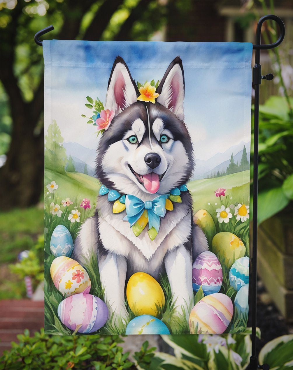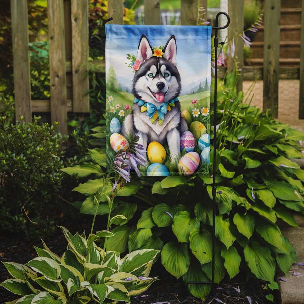 Garden Flag featuring breed specific Siberian Husky artwork. Celebrate Easter with this Easter Garden Flag. Enhance the beauty of your garden, patio, or yard with Caroline's Treasures Decorative Garden Flag, proudly made in the USA. Crafted from two pieces of thick, double-sided polyester fabric, this 2-ply garden flag is designed to withstand various weather conditions, making it water-resistant and weatherproof. Featuring correctly readable words on both sides, this garden flag offers a delightful visual experience from any angle. With its heavier weight, it stands out among other garden flags, ensuring stability and durability even in wind, rain, and snow. Measuring approximately 11 1/4 inches by 15 1/2 inches, this flag allows you to personalize your outdoor decor. It comes with a 1 1/2-inch sleeve sewn in, allowing easy attachment to any standard garden flag stand or garden size porch hanger (sold separately). Make a statement in your outdoor space with Caroline's Treasures Decorative Garden Flag, a vibrant and high-quality flag that adds color and personality to your surroundings. Proudly made in the USA, it's a symbol of quality craftsmanship and attention to detail.