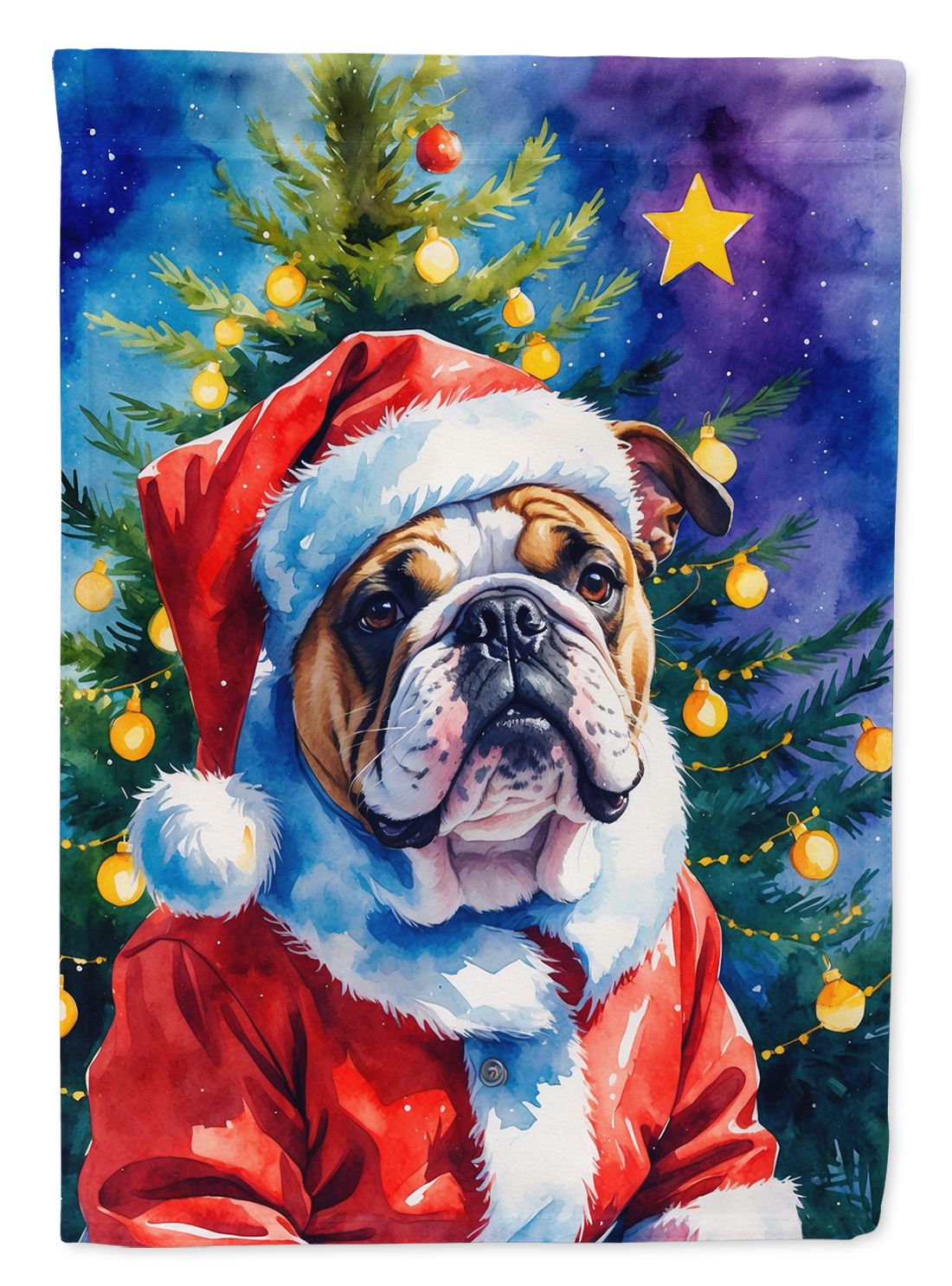 English Bulldog Christmas House Flag Large Porch Sleeve Pole Decorative Outside Yard Banner Artwork Wall Hanging, Polyester, House Size, Multicolor