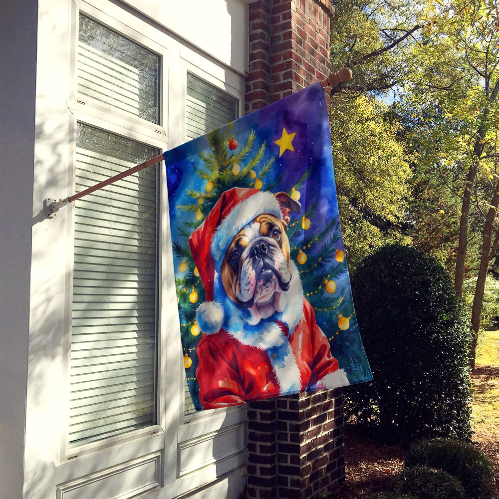 House Flag featuring breed specific English Bulldog artwork. Celebrate Christmas with this Christmas Large Flag. Presenting our Heavy Duty Polyester House Size Decorative Sleeve Pole Flag, a vibrant addition to enhance the aesthetic appeal of your home. This large decorative flag, measuring approximately 28 x 40 inches, offers ample coverage and visibility. Each flag is meticulously sewn and made individually, ensuring a unique piece that may slightly vary in size. It's a sleeve pole flag, designed to fit a standard decorative flag pole effortlessly. Please note that the flag pole and bracket are not included and should be purchased separately. What sets our flag apart is its dual-sided print. The design is mirrored on both sides of the fabric, allowing for uniform visibility regardless of the angle. Printed in full color, our flag showcases vibrant hues that truly stand out. To ensure lasting vibrancy and durability, the dyes are heat-set into the fabric. This ensures your flag remains bright and captivating through various weather conditions. Elevate the look of your home with our Heavy Duty Polyester House Size Decorative Sleeve Pole Flag!