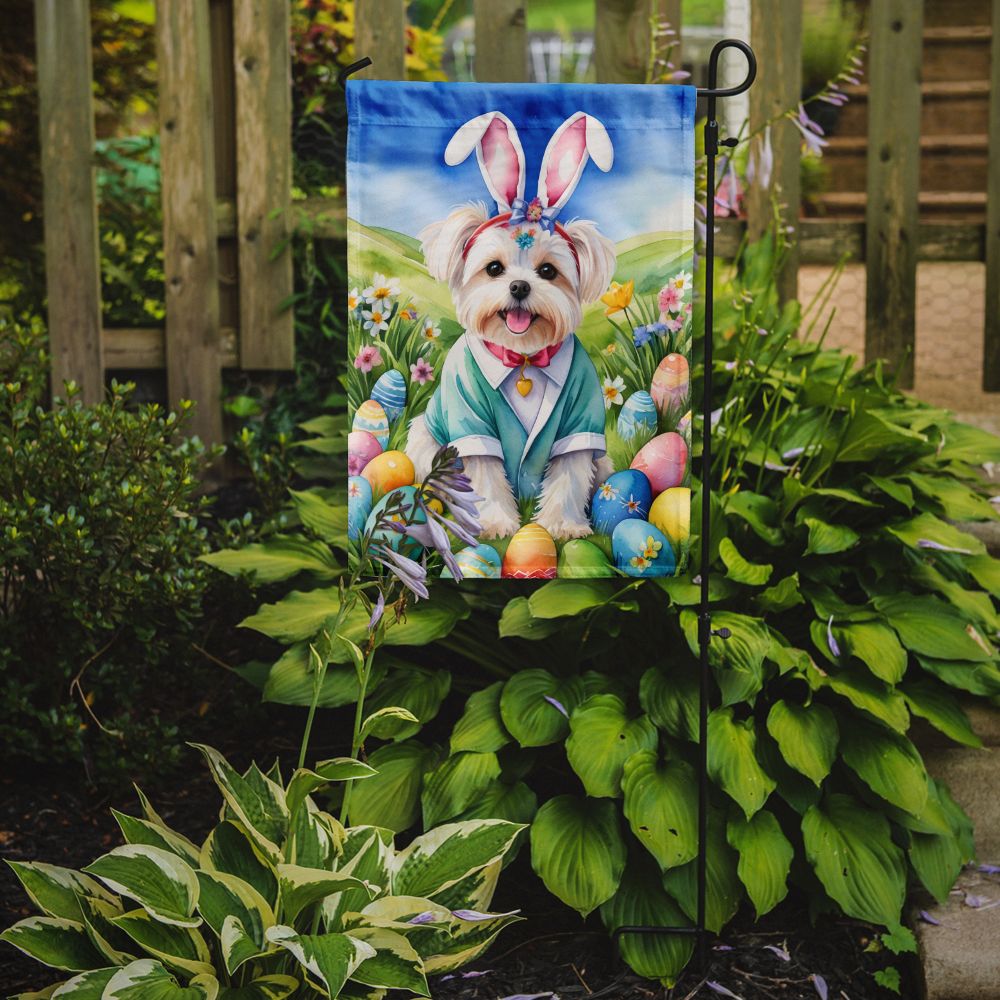 Garden Flag featuring breed specific Maltese artwork. Celebrate Easter with this Easter Garden Flag. Enhance the beauty of your garden, patio, or yard with Caroline's Treasures Decorative Garden Flag, proudly made in the USA. Crafted from two pieces of thick, double-sided polyester fabric, this 2-ply garden flag is designed to withstand various weather conditions, making it water-resistant and weatherproof. Featuring correctly readable words on both sides, this garden flag offers a delightful visual experience from any angle. With its heavier weight, it stands out among other garden flags, ensuring stability and durability even in wind, rain, and snow. Measuring approximately 11 1/4 inches by 15 1/2 inches, this flag allows you to personalize your outdoor decor. It comes with a 1 1/2-inch sleeve sewn in, allowing easy attachment to any standard garden flag stand or garden size porch hanger (sold separately). Make a statement in your outdoor space with Caroline's Treasures Decorative Garden Flag, a vibrant and high-quality flag that adds color and personality to your surroundings. Proudly made in the USA, it's a symbol of quality craftsmanship and attention to detail.