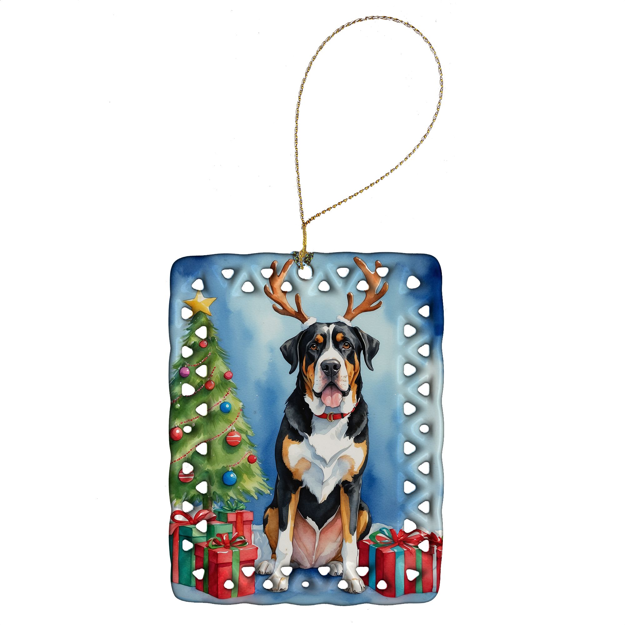 Home > Greater Swiss Mountain Dog Christmas Reindeer Porcelain Ornament Christmas Tree Hanging Decorations for Home Christmas Holiday, Rectangle, Gift