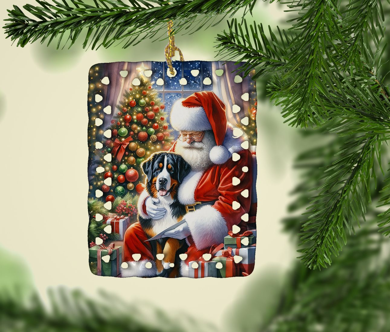 Greater Swiss Mountain Dog and Santa Claus Porcelain Ornament Christmas Tree Hanging Decorations for Home Christmas Holiday, Rectangle, Gift