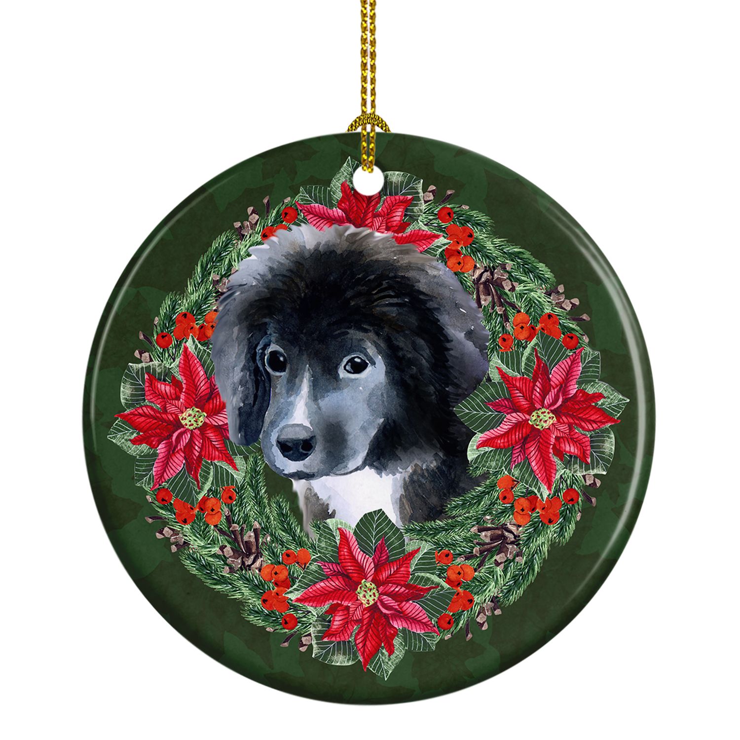 Ceramic Ornament featuring breed specific Newfoundland artwork. Celebrate Christmas with this Christmas Ornament. This Ceramic Ornament is from Caroline's Treasures collection Christmas Poinsetta Wreath. Add a touch of personalized charm to your Christmas tree this holiday season with our Ceramic Ornament. Measuring 2.8125 inches in diameter, this round porcelain ornament beautifully reflects your festive lights, enhancing your holiday decor. The gloss surface sets off the vibrant, full-color artwork contributed by one of our talented artists, bringing a pop of color and joy to your tree. This Ceramic Ornament doesn't stop at being merely decorative. The white back is designed for personalization. Write a heartfelt message, mark a special year, or inscribe a date with a paint pen or a permanent marker to create a treasured memento. Please ensure you allow any personalization to dry thoroughly before handling to maintain the pristine finish. Included with the ornament is a delicate gold cord for easy hanging. Made in the USA, this Ceramic Ornament makes an exceptional gift for a pet sitter, teacher, family member, or anyone you wish to share a little Christmas magic with. With its blend of style, charm, and personal touch, it's a meaningful addition to any Christmas tree. This Ornament is from Caroline's Treasures Dogs category of products.